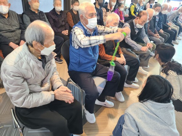 4월8일 내부강사 프로그램(레크레이션) Info. Writer 명품다산주야간보호센터 Date 26-04-08 15:20 View116 Reply0 Link 이전 다음 목록 Content 어르신들이 함께 노래도 신나게 불러 보시고 몸풀기 체조도 열심히 따라하시고도르레 원리를 이용하여 물병으로 컵을 들어 올리는 게임도 재미있게 해 보시고선생님의 노래를 들으시면서 나오셔서 춤도 추시면서 즐거운 시간을 보냈습니다. 이전 다음 목록