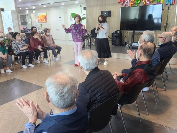 4월17일 (금요일) 외부강사 프로그램 (웃음치료) Info. Writer 명품다산주야간보호센터 Date 26-04-17 15:31 View34 Reply0 Link 이전 다음 목록 Content 신나는 음악에 맞춰서 모두 신나게 율동을 하시고 손유희 동작들도 따라해 주시고진달래 화전과 좋아하는 음식에 대해서 이야기도 해보시고, 어르신들이 직접 노래도불러 주시면서 재미있고 즐거운 시간을 보냈습니다. 이전 다음 목록