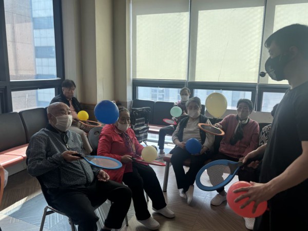 4월18일 (토요일) 외부강사 프로그램 (실버놀이 활동) Info. Writer 명품다산주야간보호센터 Date 26-04-18 21:45 View25 Reply0 Link 이전 다음 목록 Content 노래도 힘차게 함께 불러 보시고 몸풀기 체조도 열심히 따라해 주시고풍선을 이용하여 재미있는 놀이 활동도 열심히 재미있게 하시면서어르신들이 즐거운 시간을 보냈습니다. 이전 다음 목록