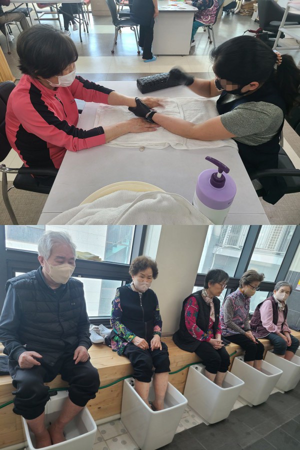 4월21일 (화요일) 족욕 및 손마사지 Info. Writer 명품다산주야간보호센터 Date 26-04-21 14:42 View8 Reply0 Link 이전 다음 목록 Content 어르신들과 선생님들이 어울려서 족욕도 하시고 손마사지도 하시면서즐겁게 대화도 하시고 음악도 듣고 모두 행복한 시간을 보냈습니다. 이전 다음 목록